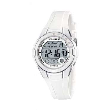 Das Modell-Nr. K5571/1 wirkt ganz in Weiss sehr sportlich. Eine dezente Herzverzierung im oberen, rechten Viertel verrät die weibliche Zielgruppe. Die Uhr mit Digitalanzeige ist funktional gestaltet und für Kinder übersichtlich zu bedienen. Die Gehäusegröße misst 41x38 mm. Dusch-, Bade- oder Regenwasser verträgt die Armbanduhr. Zum Tauchen ist sie nicht geeignet.