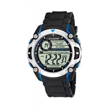 Die Calypso watches Jungen Digital Kautschuk Armbanduhr überzeugt in sportlichem Design mit zahlreichen Funktionen. In Schwarz, Blau und Silber designed lässt sie sich zu zahlreichen Outfits und Modetrends gekonnt kombinieren. Die große Herren Sportuhr mit rundem Gehäuse und Quarzuhrwerk bietet ein digitales Anzeigenformat mit Beleuchtungsoption. Die integrierten Features beinhalten eine Kalenderfunktion und eine Alarmfunktion sowie eine Stoppuhr.