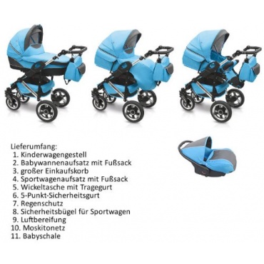 - Kombiwagen mit verschiedenen Sitzen für das Kind - Babyschale, Sportwagenaufsatz, Babywanne