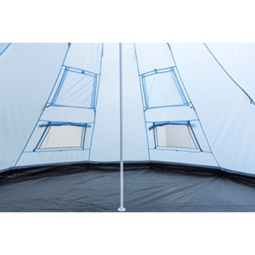 Sie müssen außen nur noch Heringe an die Seile anbringen und schon steht das Zelt stabil und sicher. Mit einer Wassersäule von 3000 mm kann dieses Zelt auch für jeden Anlass genutzt werden. Selbst auf einem verregneten Festival stehen Sie damit immer gut da und müssen sich im Gegensatz zu Anderen keine Sorgen machen. Das Zelt hat ein kleines Vordach und Fenster am Zelt. Durch diese Öffnungen ist das Zelt sehr gut belüftet und die Luft kann zirkulieren.