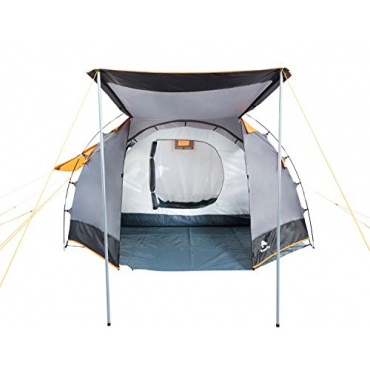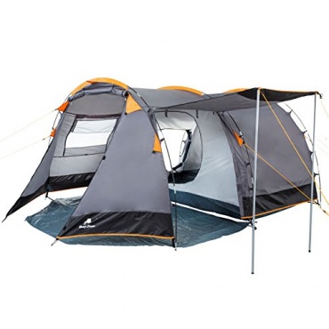 Das preiswerte CampFeuer Tunnelzelt Familienzelt ist mit 2 Schlafbereichen für maximal 4 Personen ausgestattet. Im Test überzeugte das geräumige Tunnelzelt durch einen kinderleichten Aufbau, einem ansprechenden Design, vielfältigen Belüftungsmöglichkeiten und Funktionalität. Die Eingänge zu den beiden Schlafbereichen werden durch je 1 Moskitonetz geschützt, die Insekten und sonstigem Ungeziefer ein Eindringen ins Zeltinnere verwehren. Das große Vorzelt bietet viel Platz zum Unterstellen von Gepäck, Campingmöbeln, Grillzubehör, Sportgeräten und sonstigen Campingutensilien.