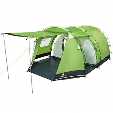 Das CampFeuer Tunnelzelt trägt den Zusatz Familienzelt ohne Zweifel zurecht. Es bietet Platz für bis zu vier Personen. Die Raumeinteilung ist dabei so, dass man nicht permanent aufeinander hocken muss. Das ist besonders bei schlechten Wettern ein Vorteil, der nicht hoch genug einzuschätzen ist. Zudem ist dieses Modell in der Farbkombination Grün/Schwarz ausgesprochen hübsch anzusehen, auch das nicht unwichtig bei einem Eigenheim auf Zeit.