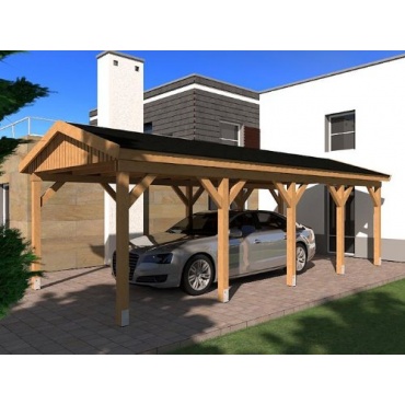 Auf Abmessungen von 350 x 800 cm kommt der aus Holz verarbeitete Carport mit seinem Satteldach. Die Pfosten und Pfetten haben beim Carport die Abmessungen von 115 mm x 115 mm, die Binder 45/90 mm. Aufgrund der guten Verarbeitung, weist der Carport eine maximale Schneelast von 0.85 kN auf. Auf Wunsch sind auch höhere Traglasten beim Schnee möglich. Geliefert wird beim Carport nur die Holzkonstruktion. Nicht geliefert und gesondert bestellt werden muss, ist die Dacheindeckung aus Schalung und Dachziegeln sowie einer Regenrinne. Der Carport wird als Bausatz mit einer Anleitung geliefert.