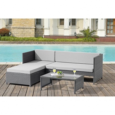 - die [casa.pro]® Gartenlounge Polyrattan hellgrau ohne Tisch