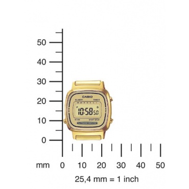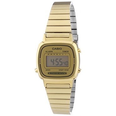 Bei der LA670WEGA-9EF Uhr handelt es sich um eine Damenuhr der Marke Casio aus der Casio Uhren Collection. Die Uhr verfügt über ein modernes, schlichtes, elegantes, goldenes Design und passt zu jedem Outfit ob zu einem schwarzem Kleid oder tagsüber zu einer Jeans. Das Armband Gehäuse und Ziffernblatt besteht aus einem goldenen Ton.