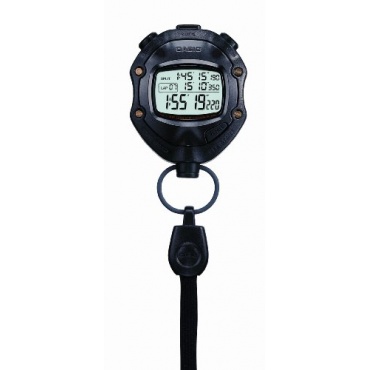 Die Stoppuhr von Casio ist sehr klein, hat aber große Technik in sich. Die Anzeige der Casio Stoppuhr ist analog und verfügt zudem noch über eine Datumsanzeige. Leichte Bedienung der Drucktasten, auch dank der klaren Beschriftung. Die Uhr lässt sich mit einer Hand bedienen. Dank der Befestigung lässt sie sich umhängen oder auch woanders ranmachen.