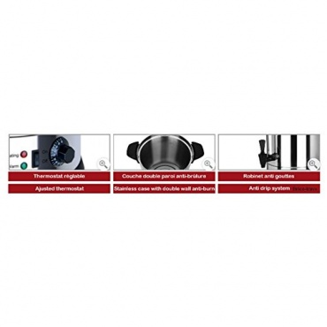 Der Casselin Heißwasserspender 30 Liter Tank eignet sich hervorragend für die Gastronomie. Durch sein schlichtes, aber dennoch elegantes Design passt er genauso gut hinter die Theke wie zum Frühstücksbüffet. Selbstverständlich verfügt der Heißwasserspender über einen Wasserstandsanzeiger, so dass sofort erkannt wird, wann das Gerät wieder aufgefüllt werden muss.