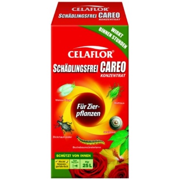 Das Celaflor Schädlingsfrei Careo Konzentrat für Zierpflanzen wird in einer 50 Mililiter Flasche geliefert. Das MIttel schützt von Innen und ist nicht bienengefährlich. Binnen weniger Stunden tritt die Wirkung dieses Insekenschutz ein. Verdünnt riecht die ganze Flasche für 25 LIter Insektenschutz.