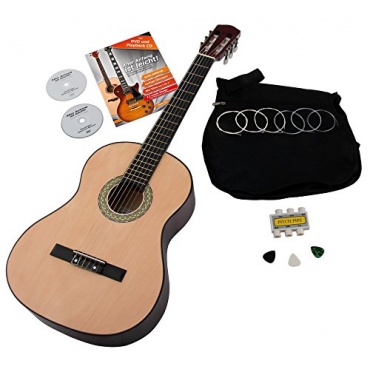 Mit dieser Gitarre bekommt man gleich ein ganzes Set geliefert, das den Einstieg in die Gitarrenwelt erleichtert. Die Classic Cantabile AS-851 4/4 Konzertgitarre besitzt ein ansprechendes Design. Allerdings kann der Lack schnell abblättern. Die Gitarre hat eine 4/4-Größe und ist daher für Kinder ab etwa 12 Jahre sowie für Erwachsene gut geeignet. Für Einsteiger bietet sie eine gute Qualität.