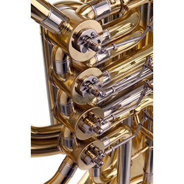 - sehr schönes Design in Gold und Silber, vier Drehventile, sehr guter und kraftvoller Klang, einfache Spielbarkeit, verstellbarer Daumenring, doppelte Kugelgelenke, sehr gut gefertigt, hohe Qualität, gut zu reinigen