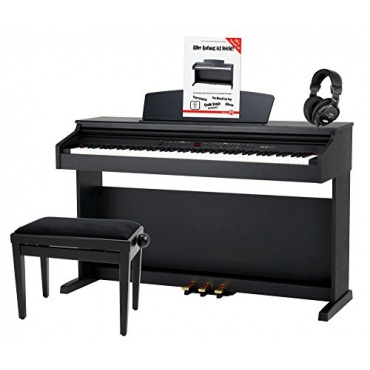 - umfassendes Set mit sämtlichem Zubehör, ideal für Anfänger geeignet, gute Preis-Leistungs-Verhältnis, zwei Kopfhöreranschlüsse, zwei integrierte Lautsprecher mit je 25 Watt Leistung, eingebautes Metronom, Hammermechanik, USB-Anschluss, ansprechendes Design