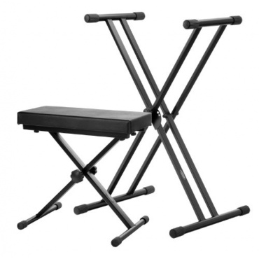 Das Keyboard-Set der Firma Classic Cantabile besteht aus einem Keyboardständer und einer Keyboardbank. Der doppelstrebige Keyboardständer ist für alle gängigen Stagepianos, Masterkeyboards, Portable Keyboards und Synthesizer geeignet und sorgt für sicheren Halt. Mit der Classic Cantabile Keyboardbank Deluxe erhalten Sie außerdem eine hochwertige Sitzgelegenheit, die bequem gepolstert und mit Kunstleder überzogen ist.