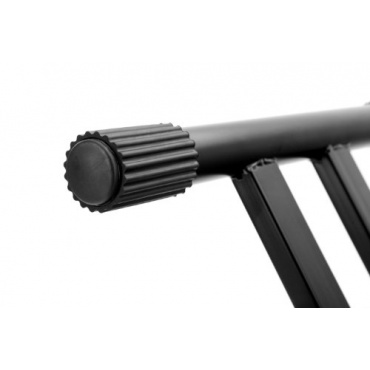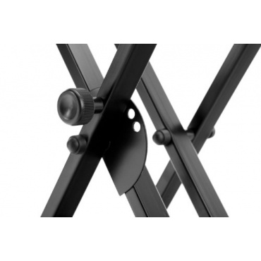 Durch den Schnellverschluss kann der Keyboardständer auf fünf verschiedene Höhen eingestellt werden und die Gummimanschetten sorgen für einen sicheren Stand. Die Pulverbeschichtung verleiht dem Keyboardständer eine lange Lebensdauer und natürlich kann er für einen leichteren Transport und eine platzsparende Lagerung zusammengeklappt werden. Die Keyboardbank ist großzügig mit Schaumstoff gepolstert, sodass auch langes Sitzen komfortabel bleibt. Außerdem sieht der Kunstlederüberzug nicht nur gut aus, sondern überzeugt auch durch seine Widerstandsfähigkeit und einfache Pflege. Die Höhe der Bank kann ebenfalls kinderleicht eingestellt werden.