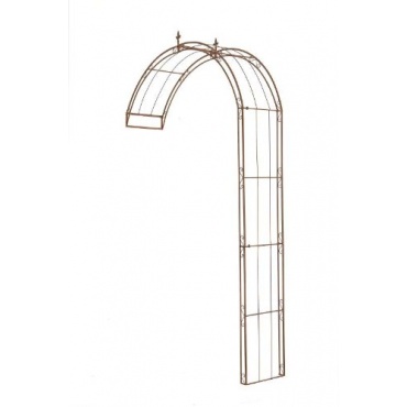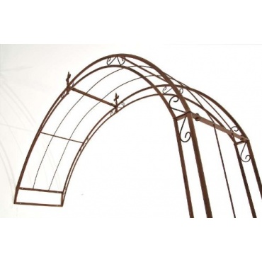 Der Rosenbogen ist aus stabilem Eisen hergestellt. Er hat eine natürliche antik-braune Farbe und ist in unterschiedlichen Größen erhältlich. Das Modell ist mit vielen Details verziert und hat eine Stabbreite von einem Zentimeter. Er ist perfekt für Rosen, aber auch Efeu fühlt sich am Rosenbogen wohl. Durch die leichte Beschichtung ist der Rosenbogen besonders geschützt. Sechs vorgefertigte Löcher helfen beim Aufbau. Standsicher fixiert wird er am Boden und an der Wand.