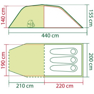 | Zelteingänge | 3 Stück | |