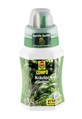 Beim Kräuterdünger von Compo handelt es sich um einen hochwertigen Spezialflüssigdünger, der besonders auf die Bedürfnisse von Gewürzen und Kräutern abgestimmt ist. Die harmonische Wirkformel ist mild und eignet sich besonders für die Anzucht und Kultur der Gewürzpflanzen. Der natürliche Aktivstoff PAA revitalisiert die Pflanzen und stärkt deren Gesundheit. Die optimierte Nährstoffversorgung wirkt schnell und stärkt pflanzenschonend das Wachstum der Kräuter. Dank der praktischen Dosierhilfe geht kein Tropfen verloren und eine genaue Dosierung ist problemlos möglich.