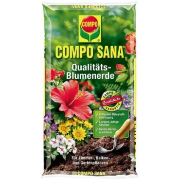 Die COMPO SANA Qualitäts-Blumenerde ist für Hobbygärtner unverzichtbar. Sie ist für Zimmer-, Balkon- und Gartenpflanzen gleichermaßen verwendbar. Dank des integrierten Langzeitdüngers wird die Pflanze bis zu 8 Wochen lang optimal mit allen Haupt- und Spurennährstoffen versorgt. Des Weiteren bietet sie, aufgrund ihrer besonders lockeren Struktur, den Wurzeln genug Platz und Halt. Außerdem wird dadurch das Verklumpen der Erde, sowie Staunässe oder Wurzelfäule verhindert.