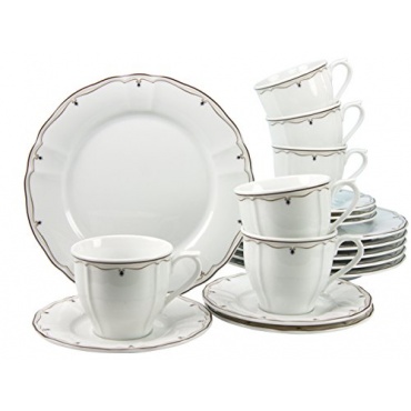 - Das Service verfügt über ein gutes Preis-Leistungsverhältnis. Es ist recht schlicht gehalten und lässt sich dadurch auch in naher Zukunft verwenden. Zudem können es Nutzer in der Mikrowelle und Spülmaschine unterbringen.