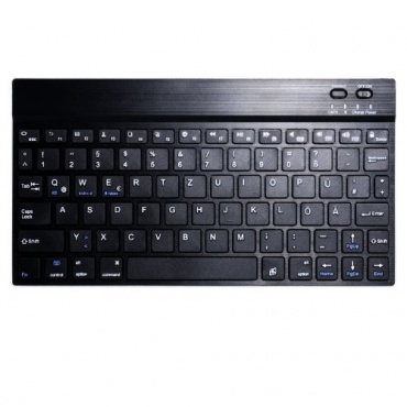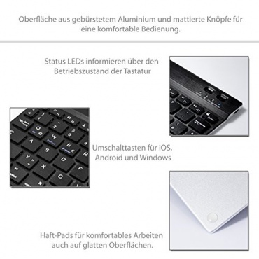 Diese Bluetooth Tastatur hat gerade mal ein Gewicht von 170 Gramm und besteht aus einem hochwertigen Aluminium-Gehäuse. Eine kabellose Verbindung zum Gerät ist hier möglich. Diese Tastatur ist für Apple-Produkte genauso verwendbar wie für alle bluetoothfähigen PC´s, Tablet´s, Computern oder Laptops.