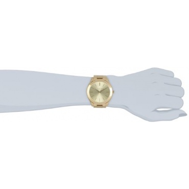 Mit dieser Uhr setzt der Designer auf schlichte Eleganz. Gehalten ist diese Uhr in einem Goldton, mit dem die Uhr beschichtet wurde. Tragen kann man diese Uhr auf einem festlichen Event oder auch im Alltag. Sie wirkt wie eine klassische Uhr mit dem gewissen Extra und ist daher sehr beliebt bei Frauen und gut als Geschenk geeignet.