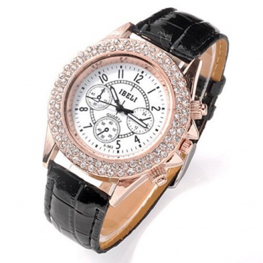 Diese Armbanduhr weist viele Besonderheiten auf. Hierzu zählen nicht nur die Strasssteine, sondern auch das schwarz-farbene Armband, das eine Breite von 2 cm hat. Es besteht aus PU-Leder und passt sich ideal dem Gehäuse an. Dieses hat einen Durchmesser von 4 cm und eine Dicke von 1,1 cm. Diese Armbanduhr sollte man allerdings keinesfalls zum Schwimmen oder zum Duschen tragen, da diese nicht wasserdicht ist. Bei all den anderen Besonderheiten, wie beispielsweise dem edlen Aussehen ist dies jedoch nicht schlimm.