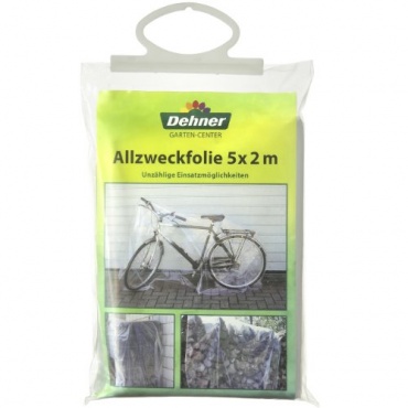 Das bekannte Garten-Center Dehner bietet eine transparente Abdeckfolie in der Größe 5 x 2 m an. Darunter lässt sich manches wetterfest verstauen. Auch Heimwerker lieben diese Abdeckplane zum Schutz vor Verunreinigungen beim Renovieren. Die wieder verwendbare Allzweckfolie erledigt ferner im Garten gute Dienste beispielsweise als Pflanzenschutz. Fahrräder, Holz, Spielsachen, Planschbecken und so weiter, die Liste aller Gelegenheiten zum Abdecken ist lang. Zusammengelegt wiegt die Plane nur 721 g und wartet nach Gebrauch im Regal auf den nächsten Einsatz. Sollte es einmal nötig sein, hat die stabile Abdeckfolie nichts gegen eine Reinigung mit "Wasser und Seife" .