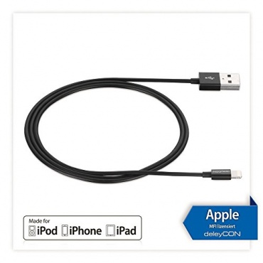 Das Daten- und Ladekabel von deleyCON ist für das Aufladen und den Datenaustausch von vielen verschiedenen Apple Geräten perfekt geeignet. Denn dieses Datenkabel ist gut geeignet, wenn man Daten synchronisieren möchte oder einfach das Apple Gerät aufladen möchte. Zudem ist es in der Anschaffung sehr günstig. Mit dem Lightning Anschluss hat man das Apple Gerät schnell angeschlossen und kann dann gleich mit dem Aufladen oder Datentransfer loslegen.