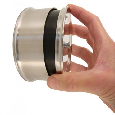 Das Maß des Frontdeckels beträgt 107 mm im Durchmesser und vom Rückenteil 110 mm. Das Fenster hat eine Größe von 81 mm im Durchmesser und die Tiefe beträgt 45 mm. Das Gehäuse besteht aus Edelstahl poliert und mit dem facettierten Frontglas mit einer thermoplastischen Gummidichtung kommt der faszinierende Druckmesser ganz besonders gut zur Geltung. Hervorstechend sind auch das satinierte Zifferblatt und die Zeiger aus Aluminium. Eine sehr hochwertige Arbeit, welche dieses Gerät auszeichnet.