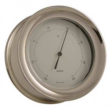 Der polierte delite Thermometer Zealand ist aus massivem Edelstahl gefertigt. Das instrument besitzt eine thermoplastische Gummidichtung, sowie ein satiniertes Zifferblatt und einen Zeiger aus Aluminium. Das Design ist klassich, dezent und zugleich elegant.