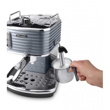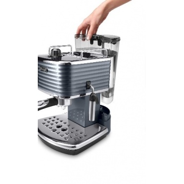 Die ECZ 351.GY Scultura Espressomaschine der Marke DeLonghi besticht durch ihre außergewöhnliche Metalloptik mit Hochglanz Finish und Chrom Details. Die Maschine hat eine Größe von 28,3 x 24,2 x 30,5 cm. Sie bietet nicht nur Espresso sondern verfügt durch das Cappuccino System mit einer Milchschaumdüse auch die Zubereitung von Milchschaum.