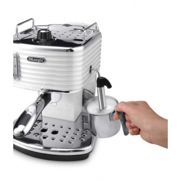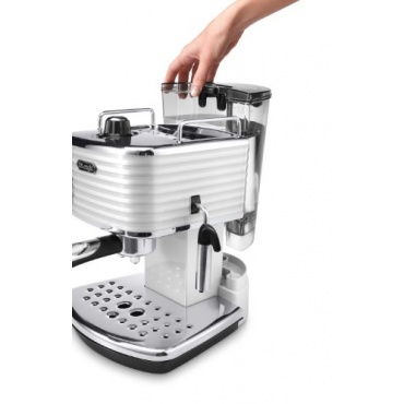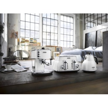 Wer nicht nur Wert auf qualitativ hochwertigen Kaffee legt, sondern auch ein Auge für Design hat, liegt mit dieser Espressomaschine genau richtig. Nicht umsonst hat die Marke DeLonghi dieses Modell "Scultura" getauft. Die Metall- und Chromoptik sorgt nicht nur für gutes Aussehen, sondern darüber hinaus für praktische Handhabung beim Kaffeekochen und Säubern. Ein Schmuckstück, das außerdem noch für äußersten Kaffeegenuss sorgt.