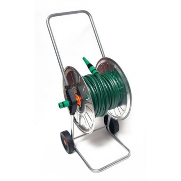 Aus einer stabilen Metallausführung, die feuerverzinkt ist, ist der DEMA Econom Schlauchwagen gefertigt. Der Schlauchwagen von DEMA verfügt über einen breiten Schlauchkranz, auf diesem Schlauchkranz befindet sich ein 25m langer Gewebeschlauch mit einer Stärke von 1/2. Zum Schlauch gehöhrt hierbei auch einer passender Wasserhahnanschluss sowie eine verstellbare Wasserspritze. Ab- und aufgerollt werden kann der Schlauch, über eine Kurbel. Abgerollt wird der Schlauch hierbei in Fahrtrichtung. Der DEMA Econom Schlauchwagen hat ein Gewicht von 5.5 kg. Farblich ist der Schlauchwagen in Silber gehalten.