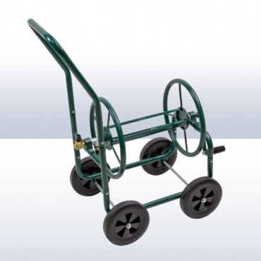 Der Schlauchwagen in neutralem Grün verfügt über eine praktische Handkurbel, mit der exakt die Menge des Schlauchs freigegeben werden kann, die benötigt wird. Die Montage ist denkbar einfach und ermöglicht ein leichtes Auf- und Abrollen des Schlauchs. Insgesamt bietet der Schlauchwagen für einen Schlauch bis zu 60 Metern Länge Platz. Die vier Gummi-Räder erleichtern das Schieben auch auf unebenen Böden und sorgen für Stabilität. Mit dem Schlauchwagen ist der Gartenschlauch stets aufgeräumt und steht immer zur Verfügung.