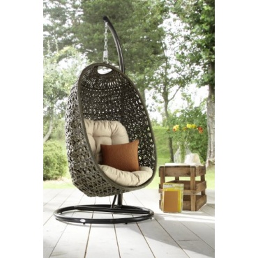 Der DESTINY Cocoon Hängesessel ist ein ganz besonderer Sessel. Denn dieser Hängesessel ist im gesamten Design sehr gut durchdacht und sieht daher ganz besonders aus. So ist er aus anthrazitbraunem Polyrattan gefertigt und wird mit den beigefarbenen Kissen perfekt und akzentreich ergänzt. Natürlich bietet er auch eine Menge Komfort. In diesem Hängesessel kann man nicht nur draußen viele schöne Stunden verbringen.