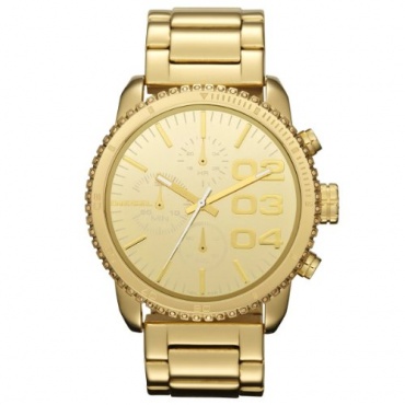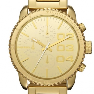 Die Armbanduhr der Marke Diesel in der Farbe Gold überzeugt auf den ersten Blick vor allem durch ihr äußeres Erscheinungsbild. Die gesamte Uhr ist in der Farbe Gold gehalten. Sowohl das Ziffernblatt, als auch das Gehäuse und das Armband, sogar die Drehlünetten sind golden. Die Zeiger erstrahlen ebenfalls in der Farbe Gold.