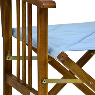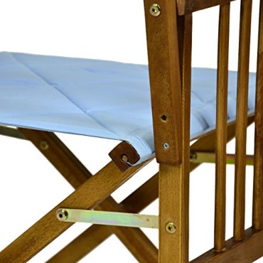 Ein Alleskönner verpackt in ein auffälliges Design ist der Regie-Klappstuhl aus dem Hause Divero. Nicht nur die originelle hell blaue Farbe der Polsterung, sondern vor allem die Variabilität spricht für den ungewöhnlichen Stuhl. Die bezaubernde Farbe und das edle rotbraune Akazien-Holz harmonieren ungewöhnlich gut miteinander und sorgen für bewundernde Blicke im Garten, auf dem Balkon, beim Grillen im Freien oder einfach im Zimmer.