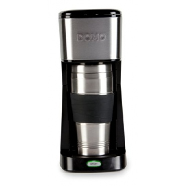 Diese Domo Kaffeemaschine kann dank ihrer kompakten Maße von 21 x 17 x 29 cm platzsparend aufgestellt werden und ist schlicht in schwarz gehalten. Sie wird lediglich über einen Knopfdruck bedient. Nach der Zubereitung kann der Kaffee im Thermobecher überall mit hingenommen werden. Der Becher lässt sich dicht verschließen und über einen Knopfdruck öffnen. Er hat eine gummierte Grifffläche für einen besseren Halt.