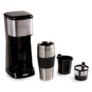 Die Domo Kaffeemaschine DO437K Single-Kaffeemaschine ist sowohl für gemahlenen Kaffee als auch für Kaffeepads geeignet. Die Kaffeemaschine ist mit einem Thermobecher versehen. Dieser ist aus rostfreiem Edelstahl gefertigt, doppelt isoliert und fasst 400 ml. Der Kaffee fließt direkt in den Thermobecher, ein Umfüllen ist daher nicht nötig. Der Thermobecher passt in jede KFZ-Trinkhalterung und ist spülmaschinengeeignet.