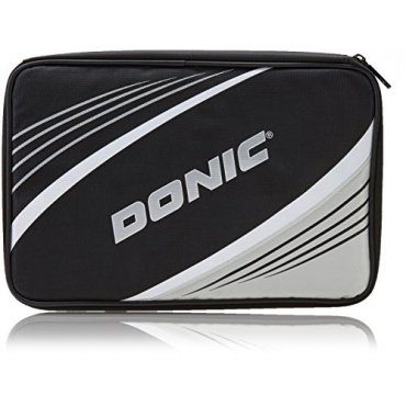Die Donic-Schildkröt Tischtennisschläger Hülle ist eine rechteckig geformte Hülle, die Platz für zwei Schläger bietet. Das Erscheinungsbild der schwarz-weißen Tasche wird durch ein großes Logo mit dem Markenschriftzug Donic geprägt. An der Rückseite befindet sich ein Ballfach, in dem sich mit zwei Tischtennisschlägern kaum ein Ball verstauen lässt. Aufgrund der kleinen Größe bietet sich dieses Seitenfach eher zum Verwahren von Kreditkarten, Schlüssel oder anderen kleinen Utensilien an.