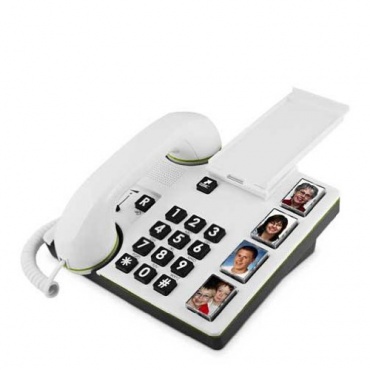Das schnurgebundene Großtastentelefon des Typs doro MemoryPlus 319ph in weißer Ausführung mit vier Direktwahl-Fototasten und optischer Anrufanzeige ist ideal geeignet für Senioren. Die relativ großen Tasten können auch von sehschwachen oder leicht dementen Personen wahrgenommen werden.