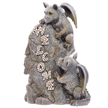 Drachen Gartenfigur #50084 Steineffekt, Welcome Schild