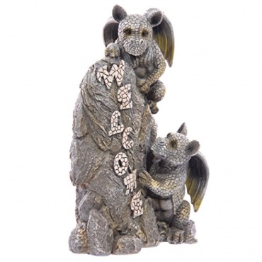 Zwei süße, kleine Drachen klettern an einem nahezu echt wirkenden Stein empor, auf dem der Schriftzug "Welcome" steht - schöner kann man wohl kaum begrüßt werden! Diese einzigartige Gartenfigur ist nicht nur ein echter Hingucker, sondern auch noch witterungsbeständig. Nur bei starkem Frost oder Schnee sollte die Figur geschützt werden. Auf dem hochwertigen Material Polyresin wirkt der Steineffekt mit seinen Verwitterungsakzenten absolut gelungen.