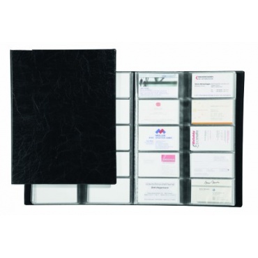 Das Durable 244501 Visitenkartenalbum Visifix gefällt durch sein schlichtes, zeitlos schönes Design. In dem Album sind 20 Klarsichthüllen fest eingeschweißt worden. In der qualitativen Visitenkarten-Sammelmappe können insgesamt 400 Visitenkarten mit den Abmessungen 9,0 x 5,7 cm übersichtlich und jederzeit lesbar aufbewahrt werden. Die Öffnung zum praktischen Einschieben und Entnehmen der Visitenkarten wurde seitlich angeordnet. Das Visitenkartenalbum ist ein nützlicher Begleiter für Außendienstmitarbeiter und für alle Geschäftsleute, die eine Vielzahl beruflicher Kontakte pflegen müssen.