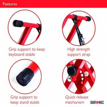Dieser rote Keyboardständer ist das besondere optische Highlight und ein Muss für jeden Keyboarder. Der Ständer ist höhenverstellbar und kann somit sehr gut Ihrer Körpergröße angepasst werden. Befestigt wird das Ganze mit 2 Bändern. Hierfür müsste ihr Keyboard allerdings Löcher an der Unterseite für die Schrauben haben. Einmal befestigt hat Ihr Keyboard so aber perfekten Halt und hält auch Ihrem Spiel stand.