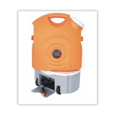 Der Easy Washer EX-1028 ist ein mobiler Hochdruckreiniger, der Dank des integrierten langlebigen Akkus überall dort einsetzbar ist, wo kein Stromanschluss zur Verfügung steht. Der 6 Meter lange Wasserschlauch erleichtert die Arbeit und durch die vorhandenen Rollen ist der Reiniger leicht zu bewegen. Der Wasserdruck kann von 3 bis 9 Bar für jeden Einsatzbereich optimal eingestellt werden, so dass es auch möglich ist, ihn als Ersatz für eine Camping-Dusche zu nutzen.