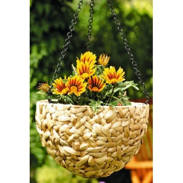 Die ecomserv Blumenampel groß ist eine wunderschön gearbeitete, geräumige Blumenampel aus Wasserhyazinthe. Durch die Größe lässt sie sich wunderbar mit einer Vielzahl von Blumen bepflanzen. Sie eignet sich besonders gut für überdachte Balkone oder Terrassen oder den Innenbereich. Die stabile Metallkette zur Aufhängung sorgt für ein leichtes Anbringen der Blumenampel.
