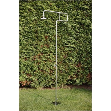 Die Gartendusche mit dem klassischem Design und der schlanken Form ist flexibel im Einsatz. Der Duschkopf ist groß und rund und erlaubt ein angenehmes Duschvergnügen. Es besteht die Möglichkeit einen Schlauch mit Gardena-System oder einen anderen Gartenschlauch anzuschliessen, der für die Wasserzufuhr sorgt. Die Kopf- und Körperdusche ist mit einem verchromtem Duschkopf aus Kunststoff ausgestattet. Die Höhe der bis zum Duschkopf ist in etwa zwei Meter.