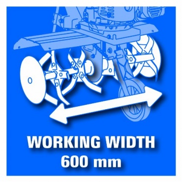 Insgesamt 6 Hackmesser, mit je 26 cm Durchmesser, sorgen auch bei festerem Boden für ein optimales Arbeitsergebnis. Die beidseitig gelagerte Kurbelwelle ermöglicht einen ruhigen Lauf und eine kraftvolle Arbeitsleistung. Für die Sicherheit beim Arbeiten mit der Bodenhacke sorgt die Totmann-Schaltung, welche den Betrieb der Hackmesser stoppt, sobald der Schalter losgelassen wird. Ein mobiler Einsatz wird durch die Unabhängigkeit vom Netzstrom erleichtert. Die Hacke kann einfach mit bleifreiem Normalbenzin betankt werden.