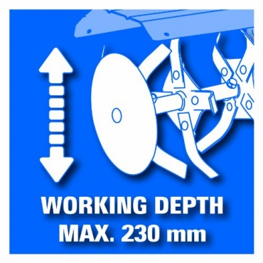 Die Einhell BG-MT 3360 LD Benzin-Bodenhacke verfügt über einen 1-zylindrigen 4-Takt-Motor. Der Bremssporn und die Führungsgriffe sind höhenverstellbar. Damit lässt sich sowohl die Arbeitstiefe als auch die Griffhöhe für die jeweilige Körpergröße optimal einstellen. Ein schwenkbares Führungsrad und die seitlichen Begrenzungsscheiben helfen dabei, die Führung zu verbessern und den Standortwechsel zu erleichtern.