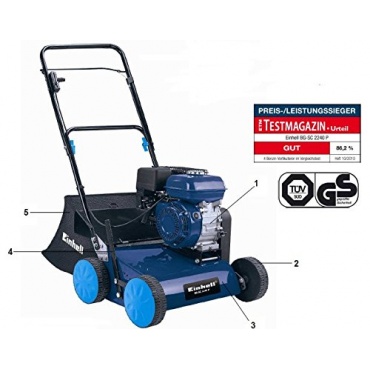 Der Einhell BG SC 911 Vertikutierer arbeitet mit einem kraftvollen 4-Takt-Benzinmotor und verfügt über eine Arbeitsbreite von 40 cm. Er gibt somit dem ambitionierten Hobbygärtner das ideale Arbeitswerkzeug an die Hand, um effizient und zeitsparend eine große Rasenfläche von bis zu 1000 qm zu vertikutieren. Der Motor benötigt bleifreies Benzin und ist sogar E10-tauglich.